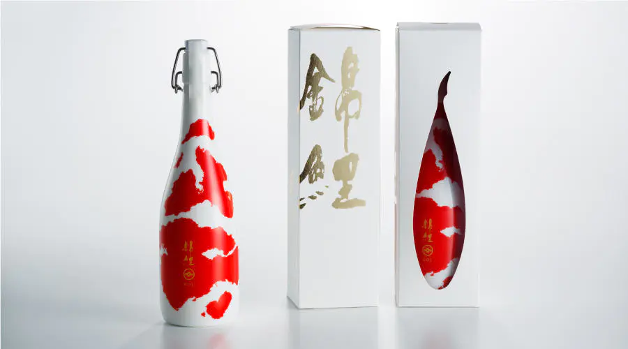 錦鯉作為日本的象征,將他用于包裝上是一個(gè)寓意非常好的創(chuàng)意,不單單是在日本,在中國錦鯉也有著很好的寓意;瓶身飄逸著錦鯉的紅白斑紋,配色讓人看著很舒服,瓶身圓潤酷似錦鯉身體;外包裝盒表面鏤空一錦鯉剪影,當(dāng)酒瓶放于盒內(nèi)能給人營造出一種錦鯉游水的趣味性。