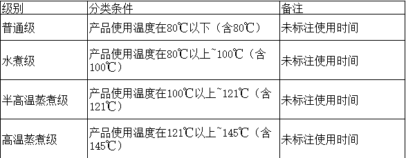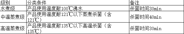 2、高溫蒸煮袋可按國(guó)外使用要求進(jìn)行分級(jí):