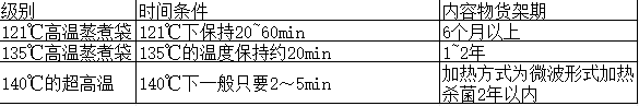 3、高溫蒸煮袋可按溫度時(shí)間分級(jí)表