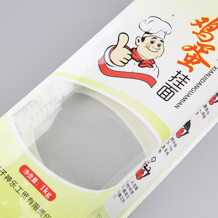 本產品為亮面塑料復合四邊封包裝袋,是面食包裝中最常見的形式。四邊封具有很高的適應性和穩定性,袋子方正立體,包裝效果好。巨人包裝選擇全新印刷工藝,使用10色印刷機,印刷效果好,更能突出包裝的新穎性。